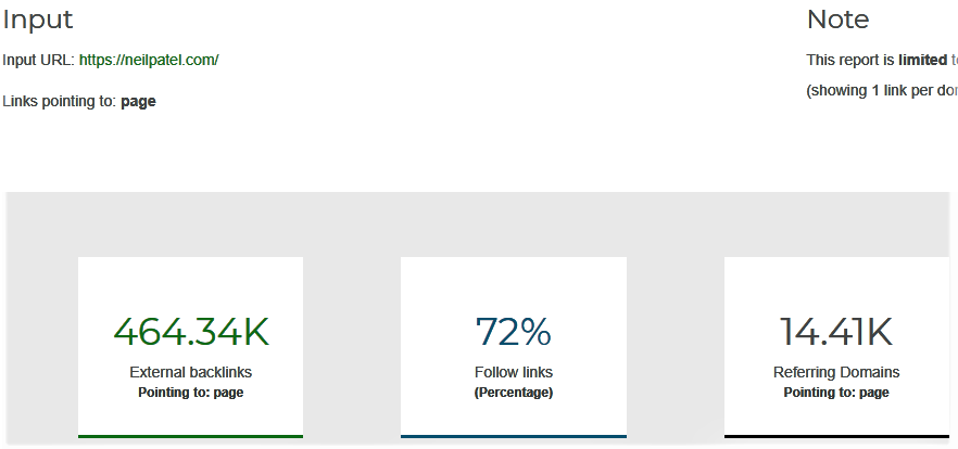 I looked up his website in the online tool to check backlinks to a website. The number of backlinks referring to his home page is ridiculous. Take a look at the data image below.