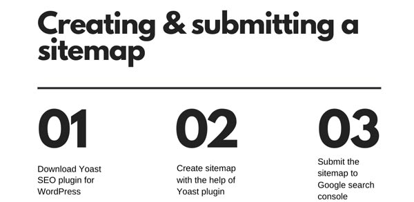 Create WordPress website sitemap in 3 easy steps | Download Yoast plugin | Create XML sitemap | Upload sitemap to Google search console.