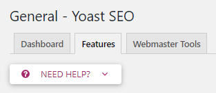 Click on the general section to go to general properties. Once you are in the general section there will be three tabs on the top. Namely, Dashboard, features, and webmaster tools. You need to click on the “features” tab.