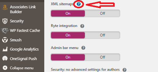 Under the features tab, you will get the option of an XML sitemap generator. Always set this to enabled mode. Now once you enable it Yost will automatically create a sitemap for your WordPress website. If you want to view the sitemap file then just click the question icon or the help button in the form of a question mark.
